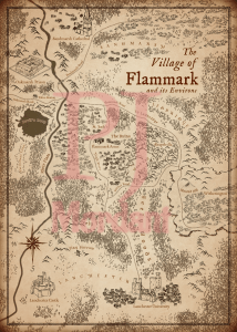 Here’s one of the maps, a sepia-rendered map of the village of Flammark!